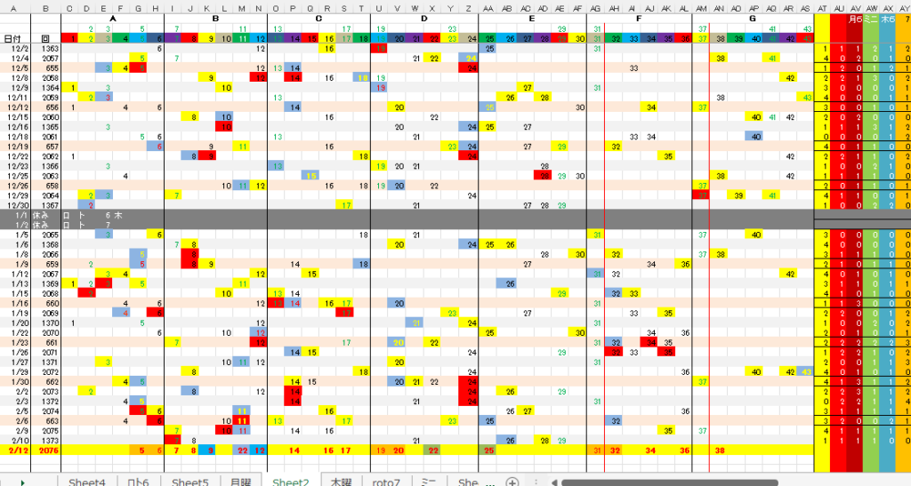 2/12 ロト6「月」予想アシスト「裏技公開中!」 未分類 Twitter Facebook はてブ Pocket LINE コピー 2026.02.11 広告 ロト6出現表 広告 広告 日付け数字 広告 ボーナス数字 全ロト出現表 広告 ☆ 今回の対象素数「7」が見事当選!、今回の対象素数は「7」「29」です。 ☆ 前回のみにBが【+2】7,となりました。
