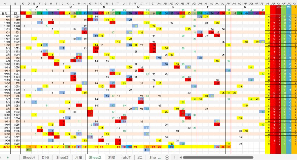 3/26 ロト7第670回予想アシストPARTⅠI