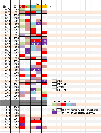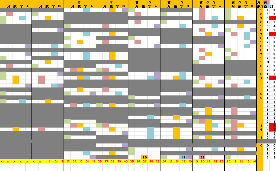 ☆ 前回の月Bが【0】31、木Bが【-1】31,7B①が【-1,+1】46,7B②が【-2,-1】1617,となりました。裏技5関連数字が5個出現となりました。