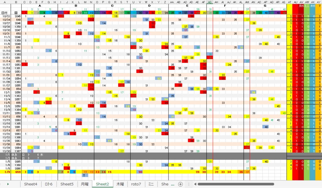 1/9 ロト7第659回予想アシストPARTⅠI 未分類 Twitter Facebook はてブ Pocket LINE コピー 2026.01.092026.01.08 ロト7出現表 広告 広告 日付け数字 広告 ボーナス数字 広告 全ロト出現表 広告 ☆ 今回の対象素数は「5」「31」です。 広告 ☆ 前回のボーナス数字関連の数字はありませんでした。 広告