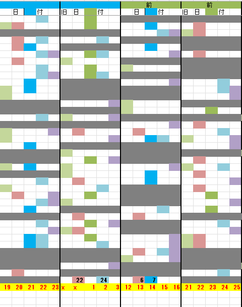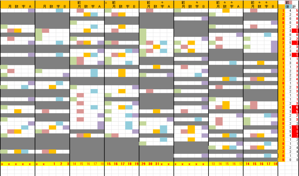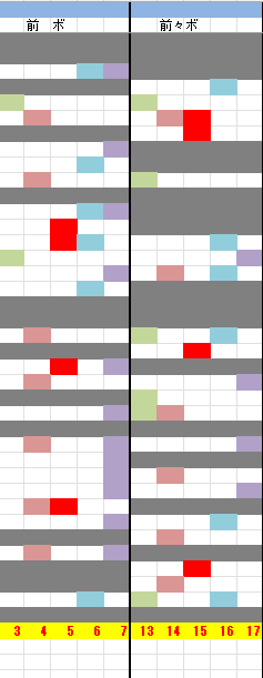 前回の月Bが【-1】11、ミニBが【+1】、木Bが【+2】33,7B①【-1】6,7B➁が【-2】11、となりました。