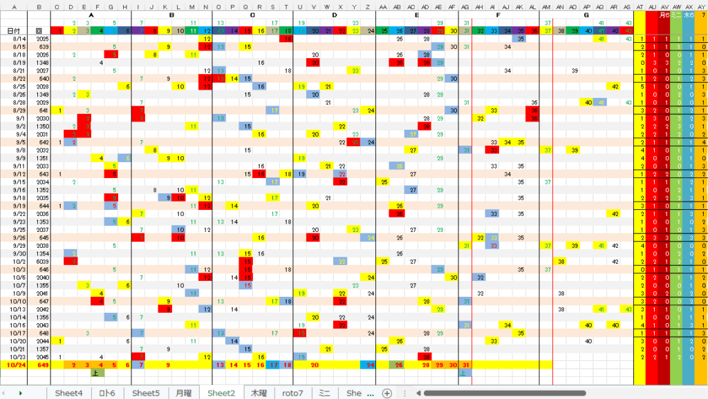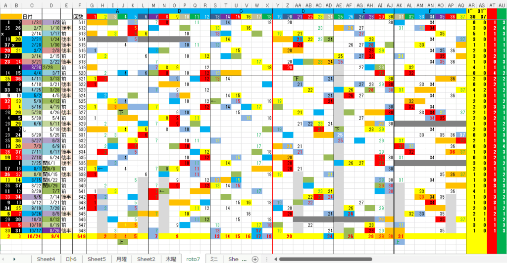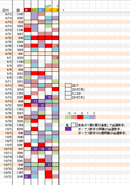 ☆ 前回の月Bが【-2,+2】12,16、ミニBが【+1】16,7B①が【0】7、見事当選!,7B➁が【-1】12,となりました。