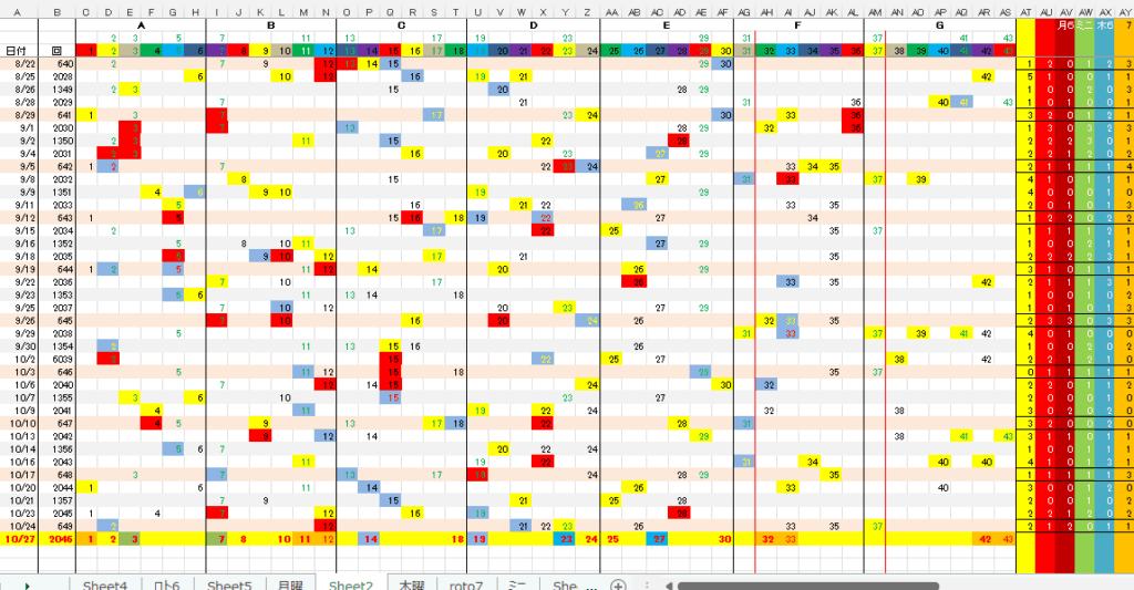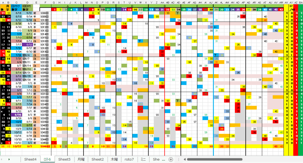 10/27 ロト6「月」予想アシスト「裏技公開中!」 未分類 Twitter Facebook はてブ Pocket LINE コピー 2025.10.26 広告 ロト6出現表 広告 日付け数字 ボーナス数字 広告 全ロト出現表 ☆ 今回の対象素数は「2」「23」「37」です。 広告 ☆ 前回の月Bが【-2】12,7Bが【-1】12,となりました。 広告