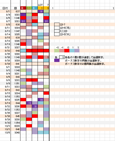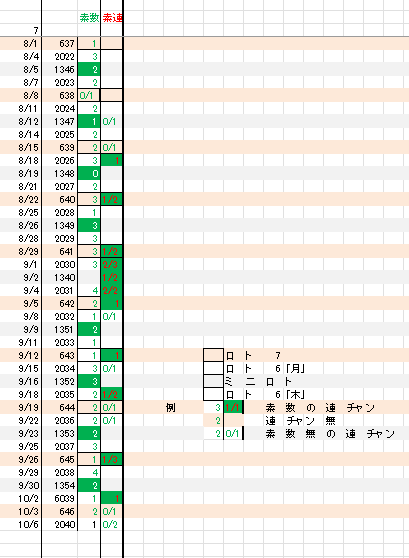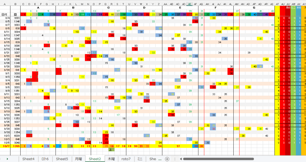 10/7 ミニロト第1355回予想アシストPART II 未分類 Twitter Facebook はてブ Pocket LINE コピー 2025.10.072025.10.06 広告 ミニロト出現表 広告 広告 日付け数字 広告 ボーナス数字 広告 全ロト出現表 Ⅱ広告 ☆ 今回の対象素数は「7」です。 広告 ☆ 前回の木Bが【+2】24,7B①が【+1】12,7B➁が【+1】30,となりました。 広告
