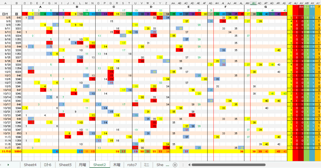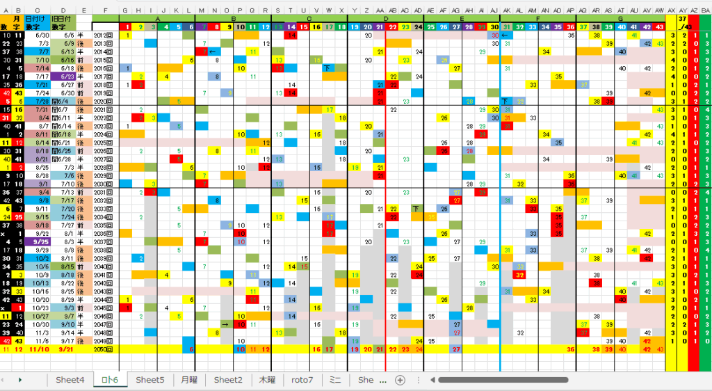 11/10 ロト6「月」第2050回予想アシスト「裏技公開中!」 未分類 Twitter Facebook はてブ Pocket LINE コピー 2025.11.09 広告 ロト6出現表 広告 広告 日付け数字 広告 ボーナス数字 広告 全ロト出現表 広告 ☆ 前回の対象素数「19」が見事当選!、今回の対象素数は「2」「13」「19」「29」sです。 広告 広告 ☆ 前回の月Bが【-1】26、ミニBが【0】13見事当選!、木Bが【0】19見事当選!、7B①が【+1】13,7Bが【-1】20,となりました。 広告