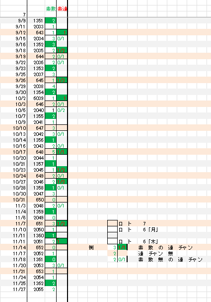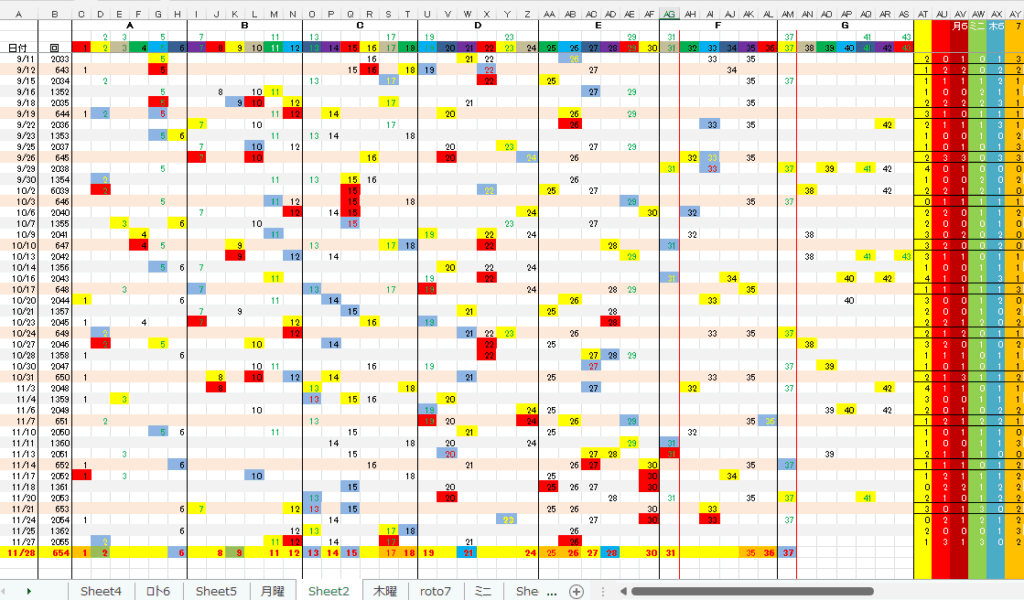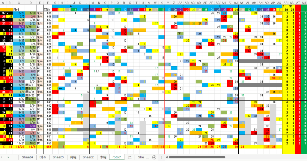 11/28 ロト7第654回予想アシストPARTⅠI 未分類 Twitter Facebook はてブ Pocket LINE コピー 2025.11.282025.11.27 広告 ロト7出現表 広告 広告 日付け数字 広告 ボーナス数字 広告 全ロト出現表 広告 広告 ☆ 前回の月Bが【-2】21、ミニBが【-1】17、木Bが【-2,-1,+1】11,12,14,7B①が【-2,-1,+1】11,12,14,7B➁が【-1,+2】14,11、となりました。裏技5関連数字が5個当選しました。 広告