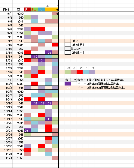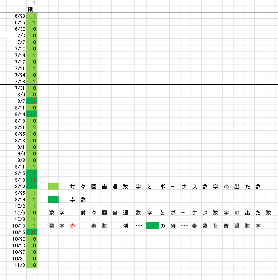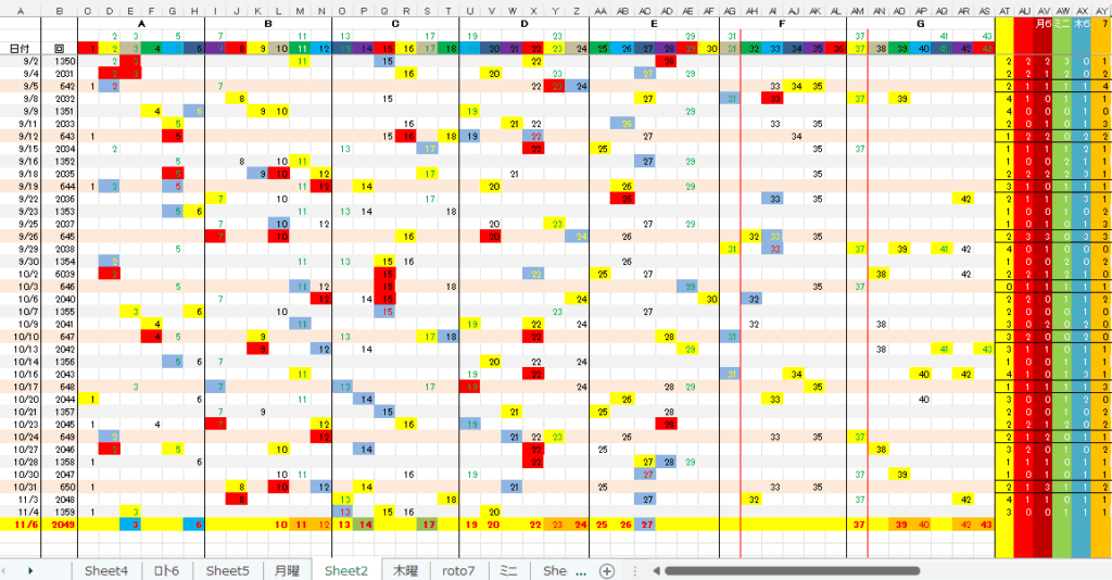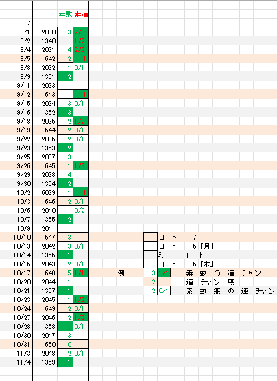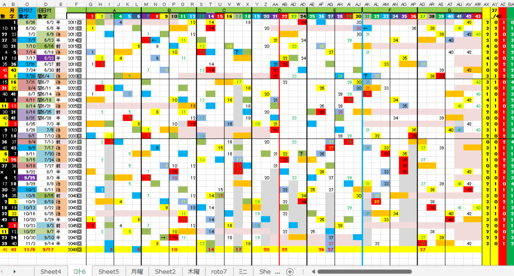 11/6 ロト6「木」第2049回予想アシスト「裏技公開中!」 未分類 Twitter Facebook はてブ Pocket LINE コピー 2025.11.05 広告 ロト6出現表 広告 広告 日付け数字 広告 ボーナス数字 広告 全ロト出現表 広告 ☆ 今回の対象素数は「3」「13」です。 広告 広告 ☆ 前回の7B②が【-1】20,となりました。 広告