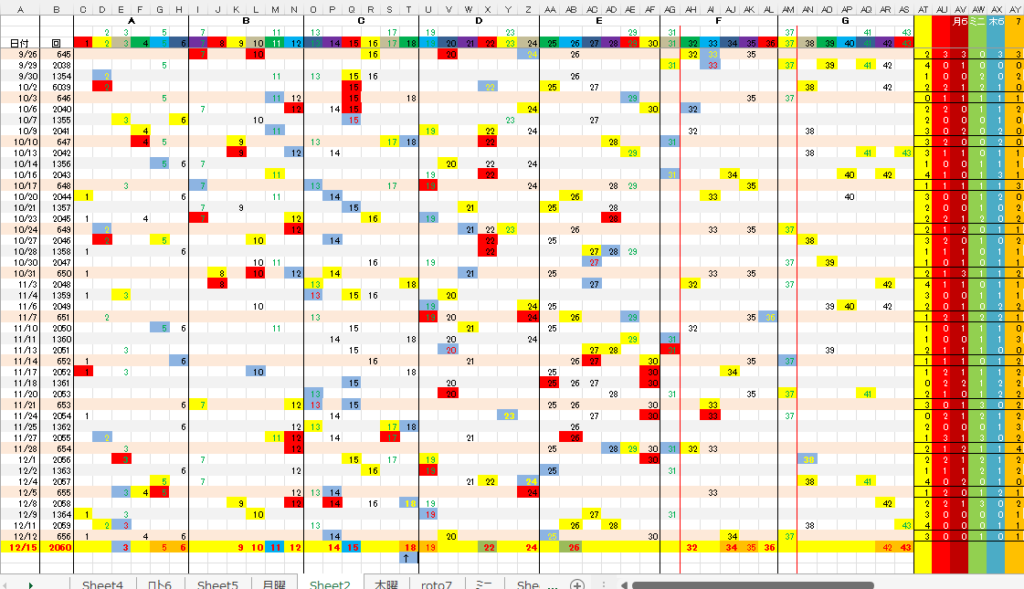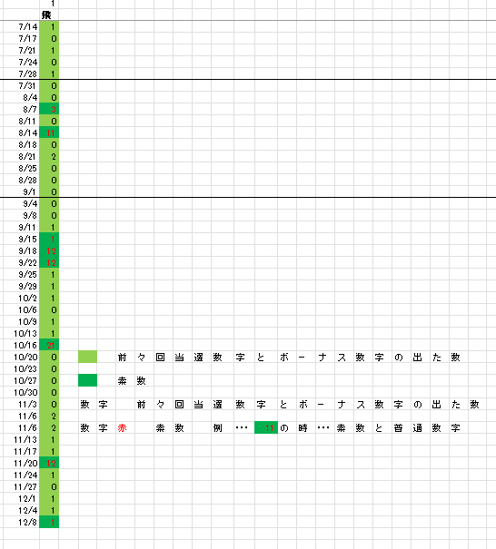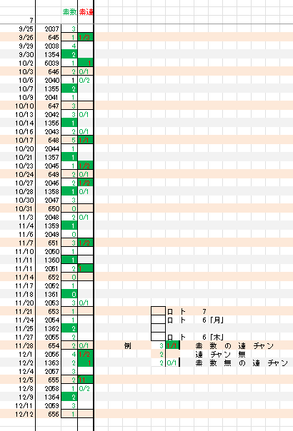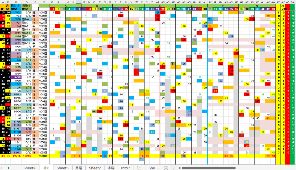 12/15 ロト6「月」第2060回予想アシスト「裏技公開中!」 未分類 Twitter Facebook はてブ Pocket LINE コピー 2025.12.14 広告 ロト6出現表 広告 広告 日付け数字 広告 ボーナス数字 広告 全ロト出現表 広告 ☆ 今回の対象素数は「37」です。 広告 広告 ☆ 前回の月Bが【+2】20、ミニBが【+1】20、木Bが【-2】【+1】1,4,7B①が「-2」「+1」1,4,となりました。 広告