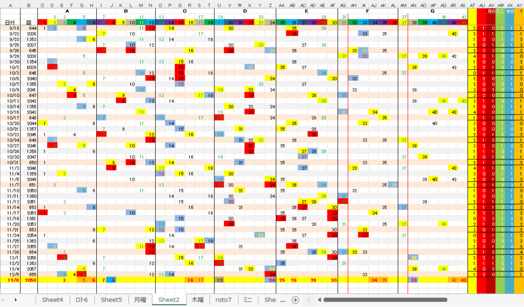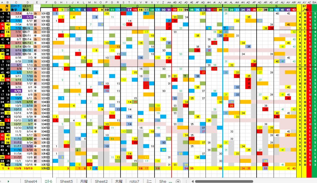 12/8 ロト6「月」予想アシスト「裏技公開中!」 未分類 Twitter Facebook はてブ Pocket LINE コピー 2025.12.07 広告 ロト6出現表 広告 日付け数字 広告 ボーナス数字 広告 全ロト出現表 ☆ 前回の対象素数「5」が見事当選!今回の対象素数は「3」「5」「13」です。 広告 ☆ 前回のミニBが【-1】24、木Bが【0】24見事当選!、7B➁が【+2】33,となりました。 広告