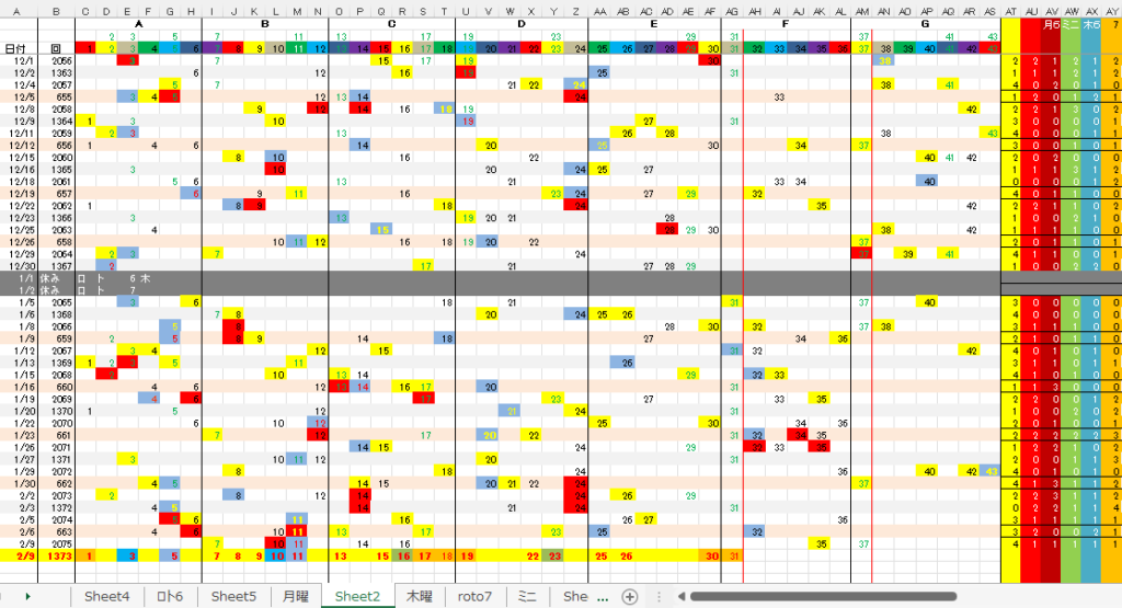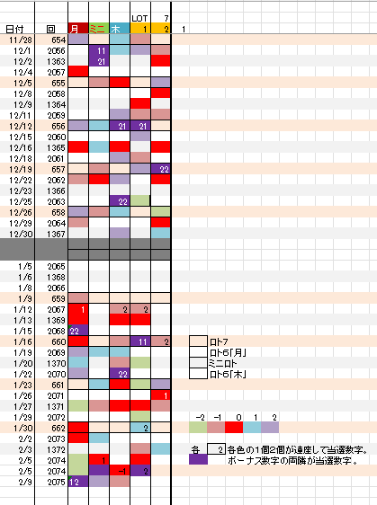 2/10 ミニロト第1373回予想アシストPARTⅠI 未分類 Twitter Facebook はてブ Pocket LINE コピー 2026.02.102026.02.09 広告 ミニロト出現表 広告 広告 日付け数字 広告 ボーナス数字 広告 全ロト出現表 広告 ☆ 今回の対象素数は「7」です。 広告 ☆ 前回の月Bが【-1,+2】7、10、ミニBが【+2】7,【-1】10,となりました。 広告