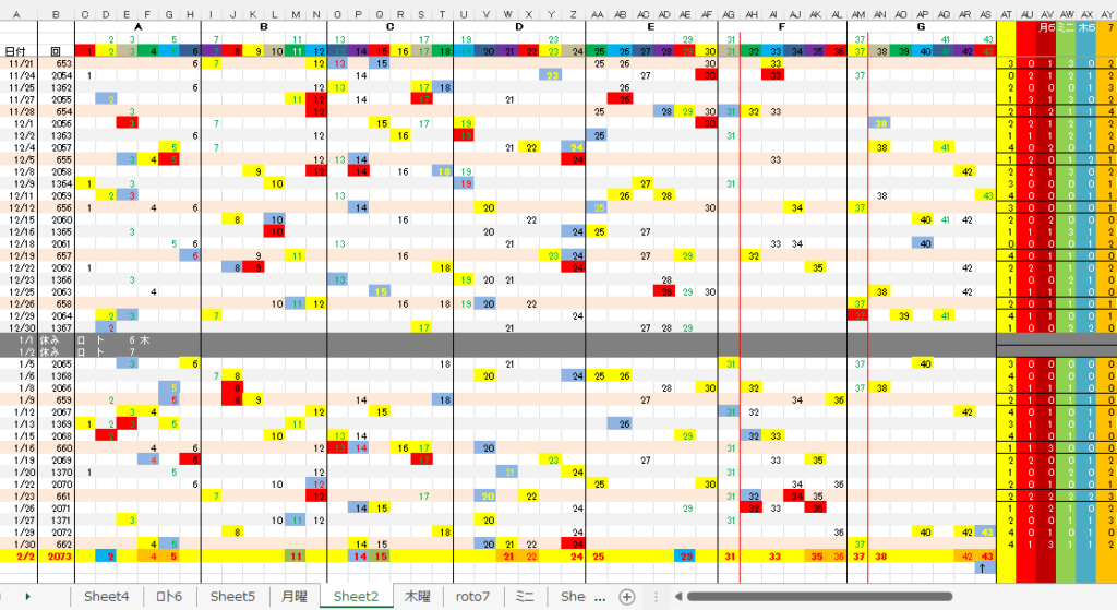 2/2 ロト6「月」予想アシスト「裏技公開中!」 未分類 Twitter Facebook はてブ Pocket LINE コピー 2026.02.01 広告 ロト6出現表 広告 広告 日付け数字 広告 ボーナス数字 広告 全ロト出現表 広告 ☆ 今回の対象素数は「5」「37」です。 ☆ 前回の月Bが【0,+1】14見事当選!,15,7B①が【+1,+2】21,22,となりました。 広告