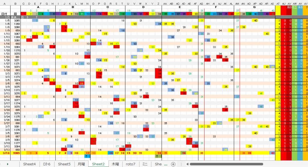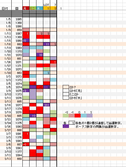 3/16 ロト6「月」第2085回予想アシスト「裏技公開中!」 未分類 Twitter Facebook はてブ Pocket LINE コピー 2026.03.15 広告 ロト6出現表 広告 広告 日付け数字 広告 ボーナス数字 広告 全ロト出現表 広告 ☆ 今回の対象素数は「11」「19」「29」です。 広告 広告 前回のミニBが【-1】29,木Bが【-1】8,7B①が【+1】22,7B②が【-1】22,となりました。 広告