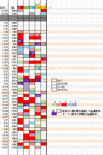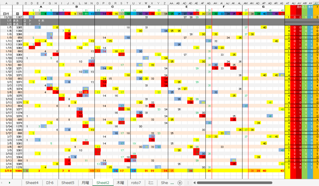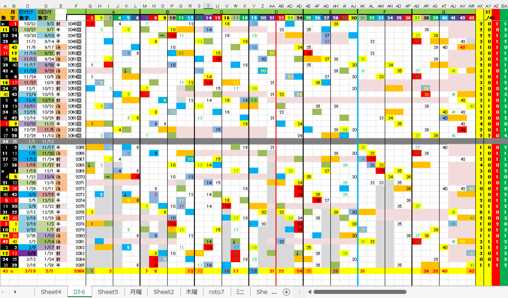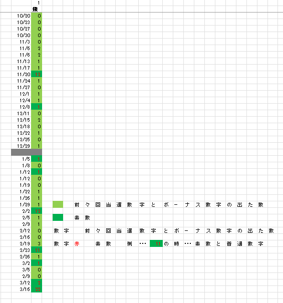 3/19 ロト6「木」予想アシスト「裏技公開中!」 未分類 Twitter Facebook はてブ Pocket LINE コピー 2026.03.18 広告 ロト6出現表 広告 広告 日付け数字 広告 ボーナス数字 広告 全ロト出現表 広告 ☆ 今回の対象素数は「23」「31」です。 ☆ 前回の月Bが【+1】15,ミニBが【0】30,7B①が18,となりました。 広告