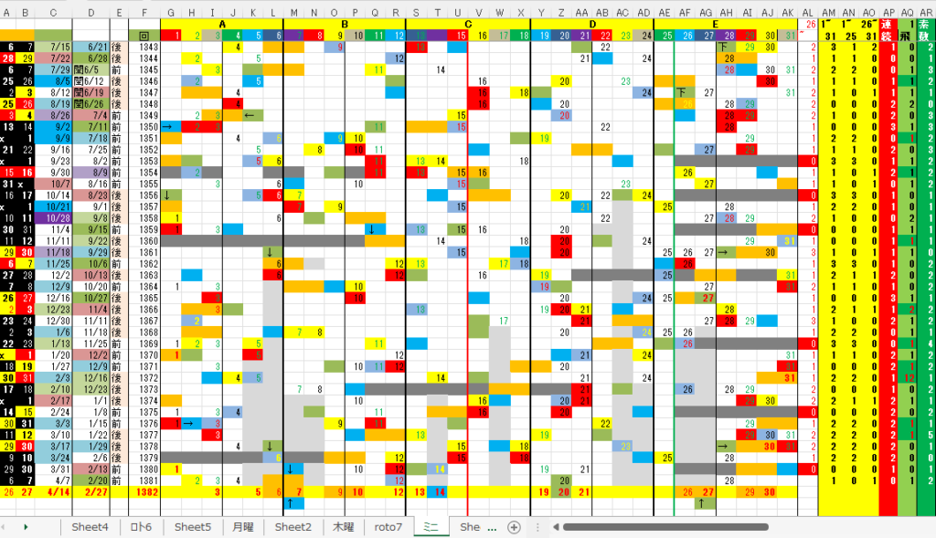 ☆ 前回の月Bが【+1】10,ミニBが【-2】10,木Bが【-2】2,7B②が【+1】26,となりました。