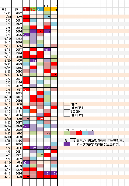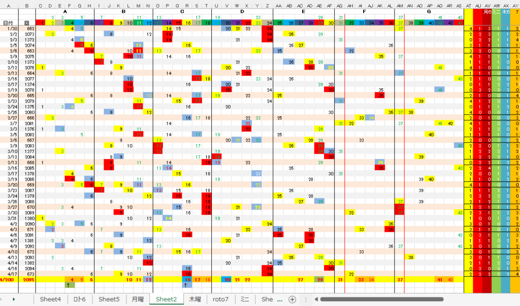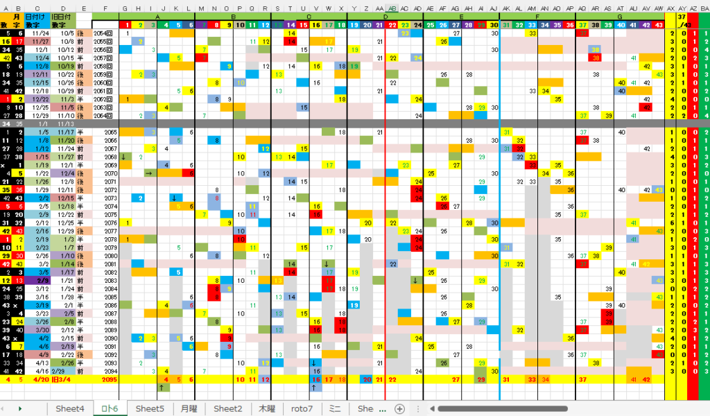 4/20 ロト6「月」第2095回予想アシスト「裏技公開中!」 未分類 Twitter Facebook はてブ Pocket LINE コピー 2026.04.19 広告 ロト6出現表 広告 日付け数字 ボーナス数字 広告 全ロト出現表 広告 ☆ 今回の対象素数はありません。 広告 広告 ☆ 前回の月Bが【-2,0】10,12見事当選!、ミニBが【-1】24、木Bが【0】16,7B①が【0】 6見事当選!、7B➁が【0】9見事当選!、裏技5関連数字のみで1等当選しました。 広告