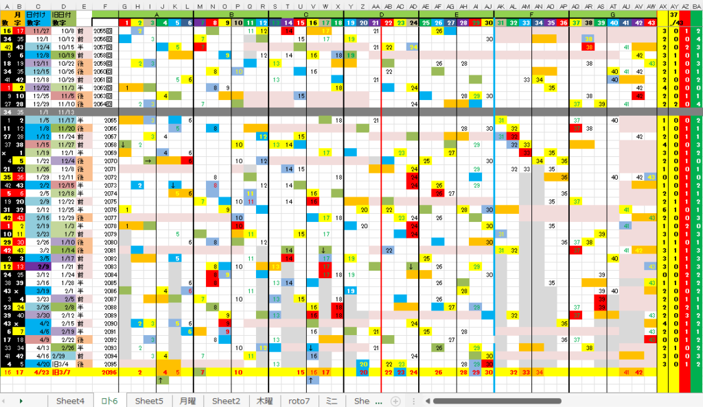4/23 ロト6「木」第2096回予想アシスト[裏技公開中!」 未分類 Twitter Facebook はてブ Pocket LINE コピー 2026.04.22 広告 ロト6出現表 広告 広告 日付け数字 広告 ボーナス数字 広告 全ロト出現表 広告 ☆ 前回の対象素数【29】が見事当選!今回の対象素数は「19」「29」「31」です。 広告 広告 ☆ 前回の月Bが【0】29見事当選!、木Bが【+2】18,7B①が【+1】18,7B②が【-1,0】18,19見事当選!、となりました。 広告