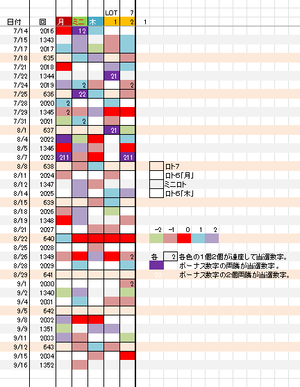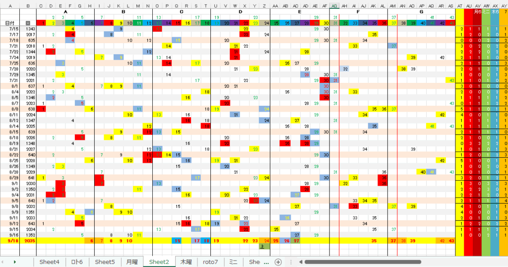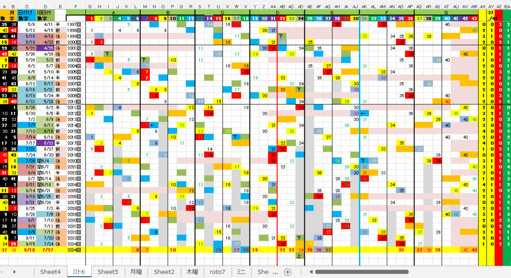 9/18 ロト6「木」第2035回予想アシスト「裏技公開中!」 未分類 Twitter Facebook はてブ Pocket LINE コピー 2025.09.17 広告 ロト6出現表 広告 広告 日付け数字 広告 ボーナス数字 広告 全ロト出現表 広告 ☆ 今回の対象素数は「5」「11」「29」です。 広告 広告 ☆ 前回のミニBが【-1】5,となりました。 広告