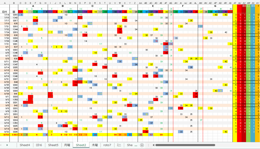 9/23 ミニロト第1353回予想アシストPARTⅠI