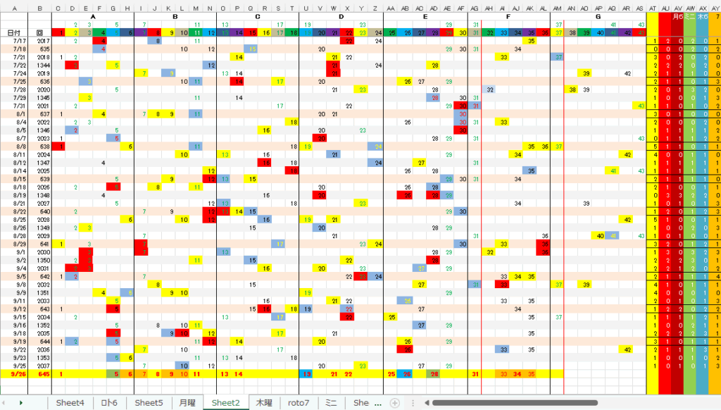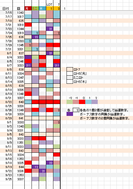 9/26 ロト7第645回予想アシストPARTⅠI 未分類 Twitter Facebook はてブ Pocket LINE コピー 2025.09.262025.09.25 広告 ロト7出現表 広告 広告 日付け数字 広告 ボーナス数字 全ロト出現表 広告 ☆ 今回の対象素数は「7」「23」「29」です。 ☆前回のミニBが【+2】7、木Bが【-2】7,7B➁が「+2」7,となりました。